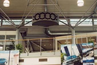 Novojet®-Weitwurfdüsen-Systeme zur zugfreien Luftverteilung in Autohäusern und Schauräumen. Kanalfreie Lösungen werden hierbei für Heizung, Lüftung und Klimatisierung favorisiert.